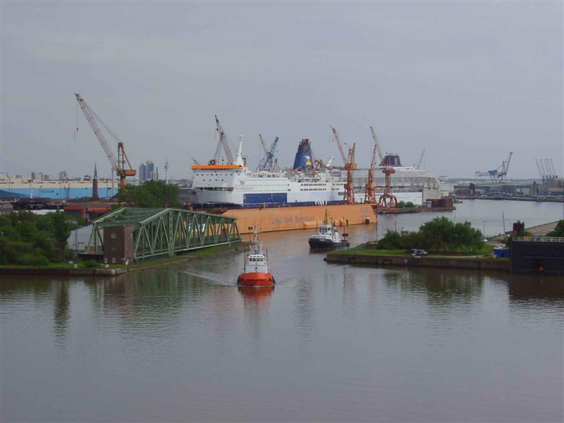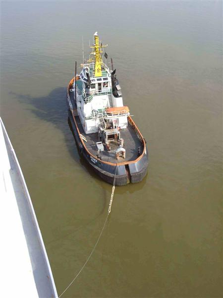 Unser Schiff in voller Höhe im Hafen |