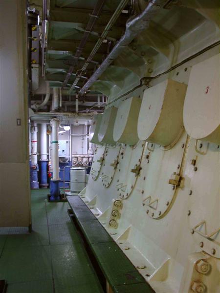 | Große Weite und Langeweile auf See | Das Schiff ist insgesamt 200 m lang | Der "Eingang" zum Motorzylinder |