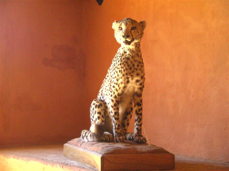 | Seitenansicht der Farm | Ausgestopftes Wild in der Farmlobby | Erdmännchen Simon |