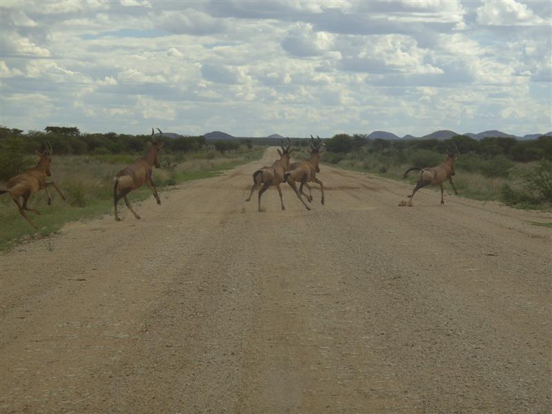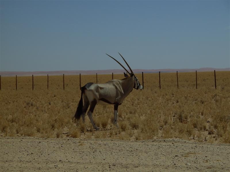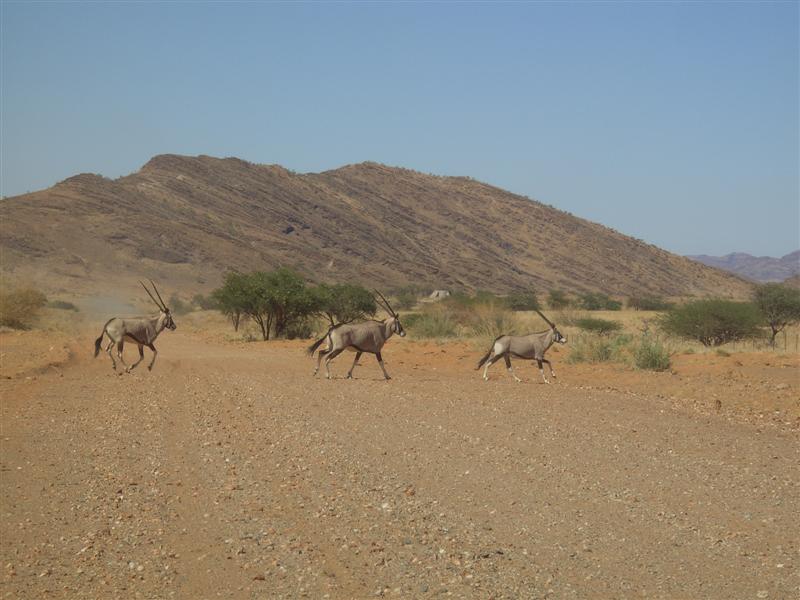 | Strauß mitten in der Namib Wüste | mehrere Oryx überqueren die Straße | Unfälle mit Oryx verlaufen meist tödlich |