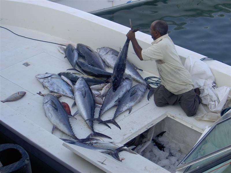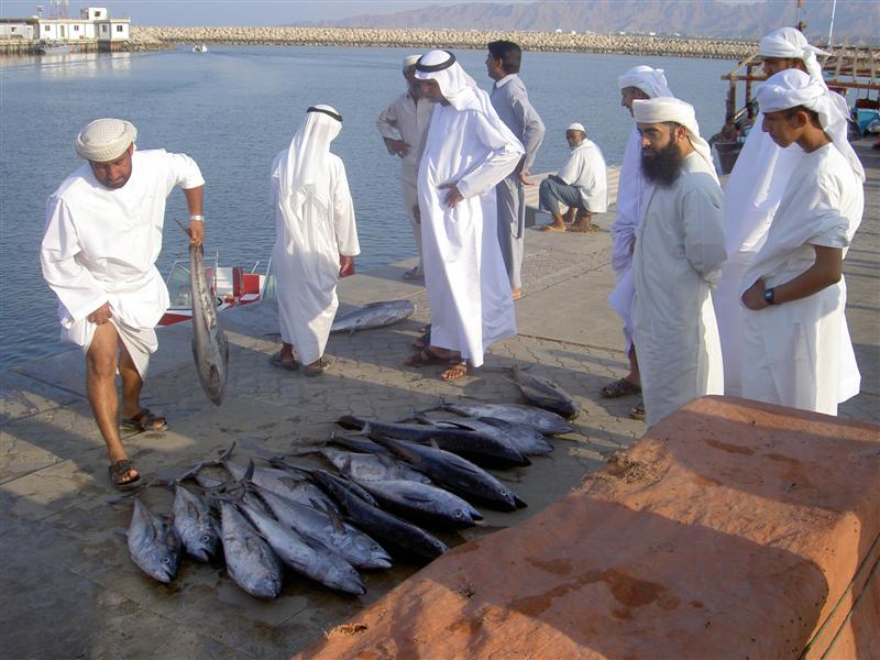 Fischmarkt in Dibba / Oman. Hier werden direkt Blue Marlin ausgeladen und am Hafen versteigert |