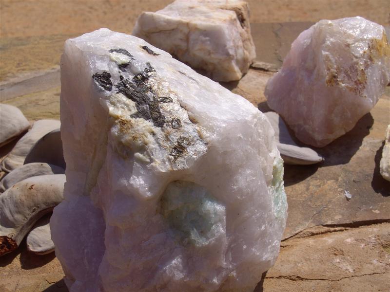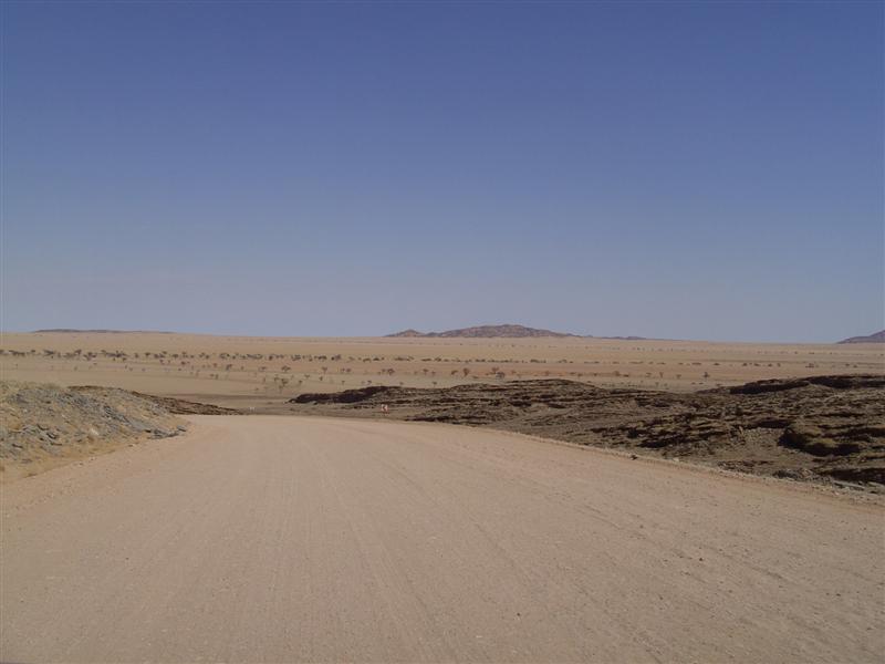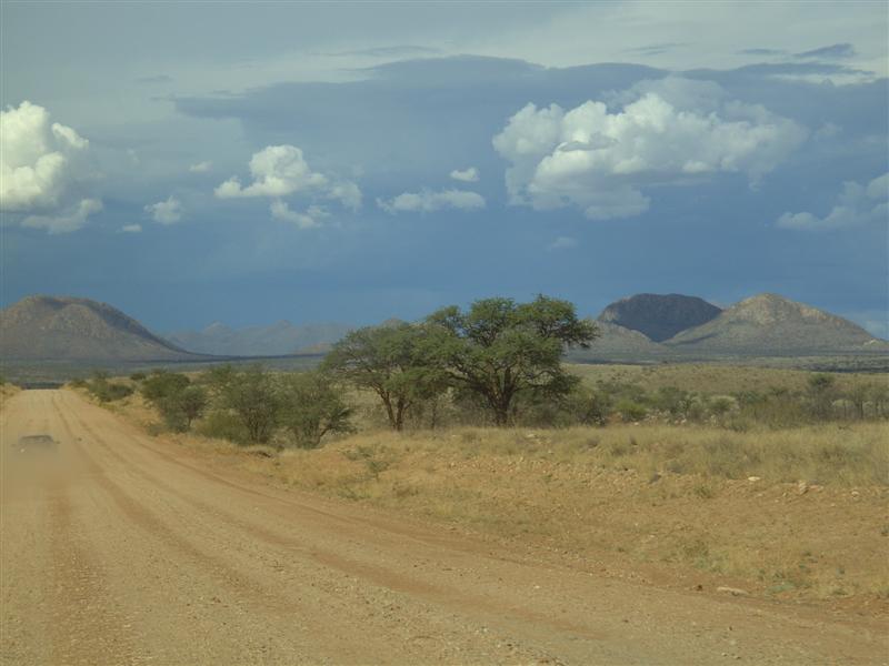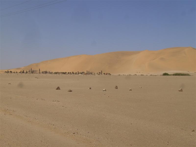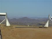 | Windrad zur Wassergewinnung | Blick auf den Anfang der Namibwüste | Rosenquarz mit Malachiteanteil |